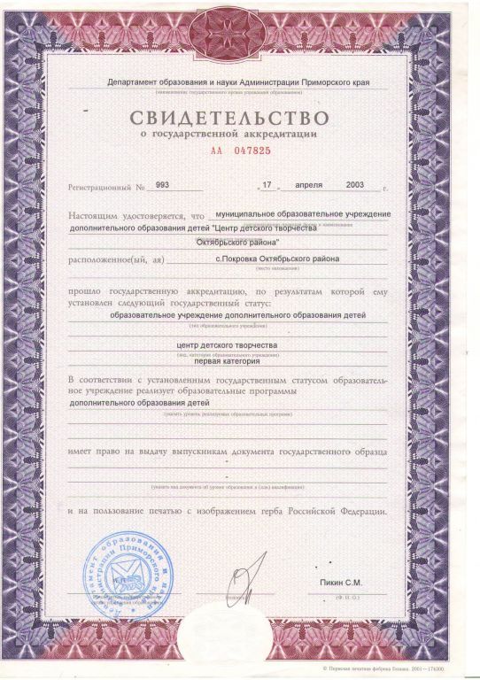 Свидетельство о государственной аккредитации
